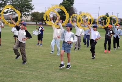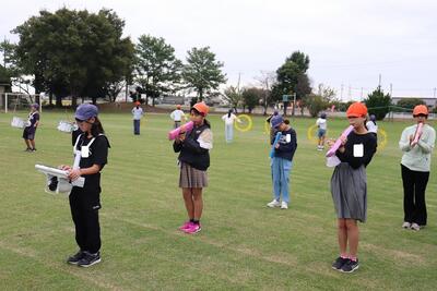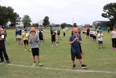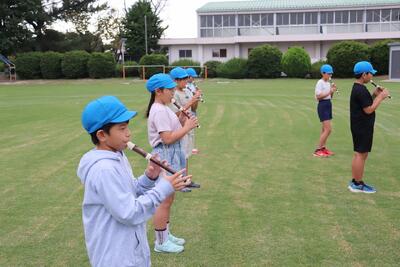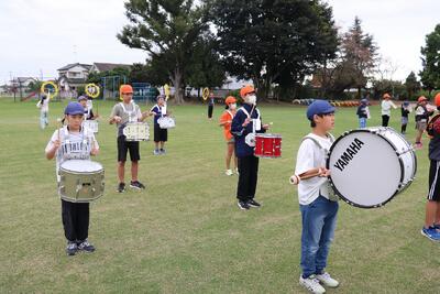 運動会で披露する鼓笛練習も今日を含めて残り3回です。今日は演奏だけでなく隊形移動を中心に練習をしていました。どのタイミングで向きを変えたり移動を始めたりするのか、細かい指示を聞きながら覚えようとしていました。膝を立ててリコーダーを吹いたり、大きな太鼓を抱えてリズムをとったり、移動しながら演奏することはとても難しいことだと思います。当日は4~6年生の合わせて105名が見応えのある演奏ができるようさらに練習を重ねていきます。