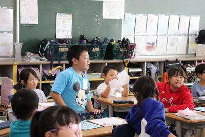 土曜日の運動会が終わり振替休業日明けの火曜日、秋空のとても良い天気で複雑な思いです。子どもたちは次の目標に向けて切り替えられている子が多いようです。3年生は音楽発表会があり、4年生はそれに加えて市や地区の音楽会も控えております。また12月には持久走大会も予定されております。もちろん、日々の学習も、1時間1時間、その目標が達成できるよう歩んでくれている様子がありました。1日の寒暖差の大きい時季でもあります。体調を崩さないようまた頑張っていきましょう。