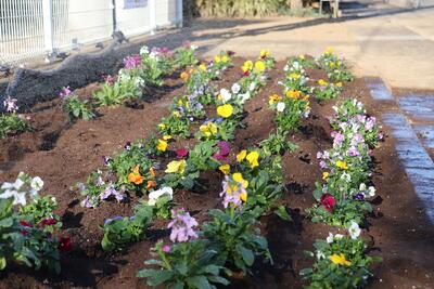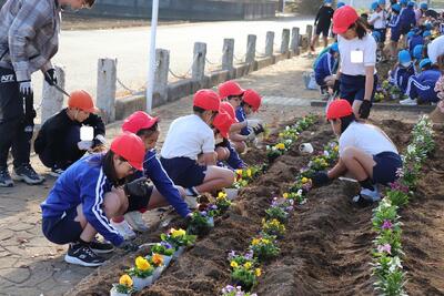 第2回花植え活動を行いました! 投稿: 屈巣小学校 (10:05) 今日は全校で2回目の花植え活動をしました。校庭にある木々も色付き、変化を敏感に感じられるような季節となりました。今回は1回目より少ないおよそ1200株前後の花苗でしたので、間隔を少し空けて校舎周りや駐車場付近の歩行者用通路脇に植えました。色とりどりの花々も私たち見る人を楽しませ、心の調子をも整えてくれそうです。くすっ子の皆さんありがとうございました。 -
