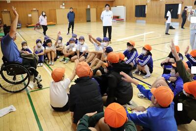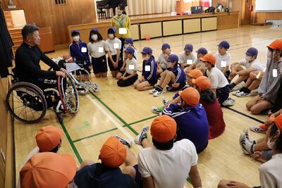 パラリンピックキャラバンに参加しました! 投稿: 屈巣小学校 (17:46) パラリンピック出場選手をはじめとした障がい者スポーツ選手を招き、本校の5,6年生が車いすバスケットを体験する機会をいただきました。体験することだけでなく、選手一人一人が目標に向けて希望や勇気をもち、実現のために努力していることを聞きました。選手の生き方に触れ、子どもたちも多くのことを学んだ貴重な体験となりました。 -