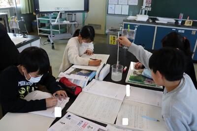 どんな姿に変わるかな? 投稿: 屈巣小学校 (02/03) 4年生の理科では水を冷やしたときの変化を調べる実験をしていました。午後の授業でも理科室は冷えていて寒いですけどよい環境です。温度の変化とともに変わる水の様子について注意深く観察していました。 -