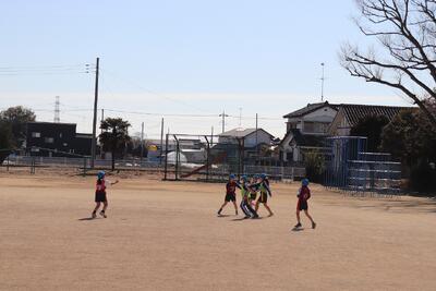 「タグ」を取られたらパス! 投稿: 屈巣小学校 (12:34) 4年生の体育の授業ではタグラグビーです。楕円形のボールを持って自由に動くことができますが、腰に付けた「タグ」を取られたらボールを手放さなければならないというルールで、ボールをゴールラインまで何回運べたかを競うゲームです。本日は穏やかな気候ですが、いつも声をかけ合いながら活気のある学習が進められています。 -