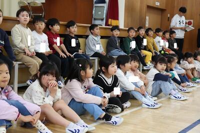 今日で4月は最終日、一堂に会して1年生をお祝いする会を開きました。上級生の児童は1年生を歓迎しようと精一杯大きな声で呼びかけたり、会場を盛り上げようとにこやかに手拍子したりしていました。校歌を歌い、1年生にプレゼントしているとき、すでに1年生も口ずさんでいる様子が見られました。2年生からもらったアサガオの種を植えて、大切に育ててくださいね。くすっ子の仲間入りをしてどんどん成長している1年生をみんなで応援していきます。お兄さん、お姉さんの良いところを見習って楽しく過ごしてくださいね。本日は保護者の皆様にもご参観いただきありがとうございました。