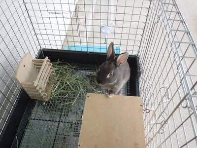 5月から飼育委員さんが世話しているうさぎの「あずき」です。